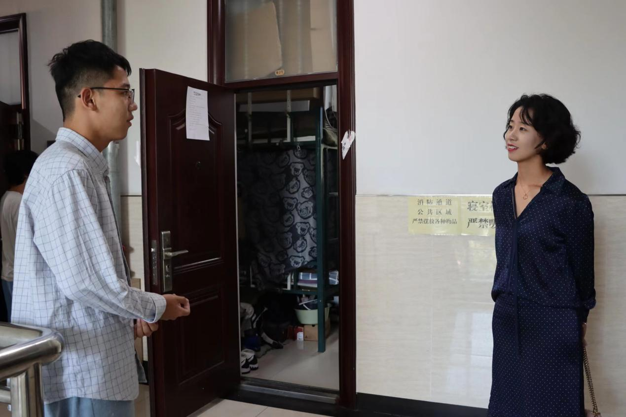 秋高气爽,凉风习习。新学期伊始,为进一步落实新学期学生返校后管理工作,充分了解学生返校后的生活情况和思想动态,解决学生新学期学习、生活上的问题和困难。2023年8月31日下午,美高梅官网党委书记曲渊立、党委副书记刘丽慧、学生工作办公室主任王托及辅导员刘锦澍、杨博斐对新民校区的学生进行走访慰问。